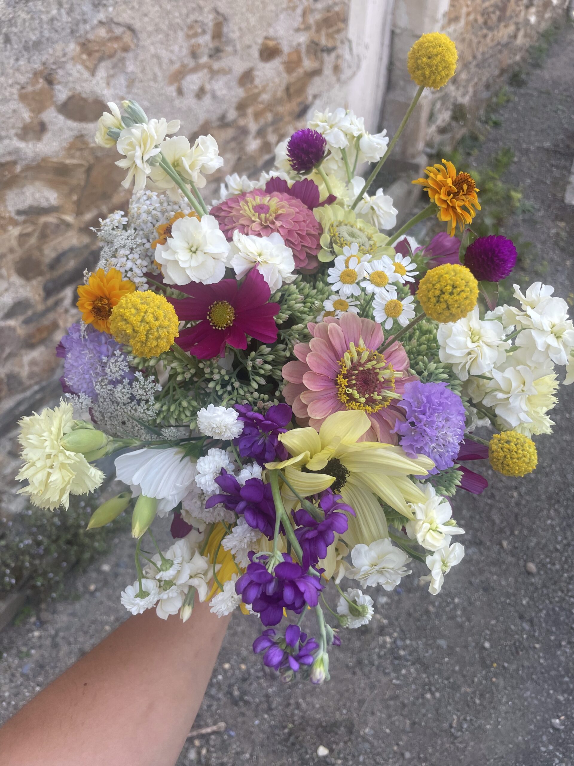 Tous nos bouquets sont faits maison, à partir de fleurs fraîchement cueillies dans notre ferme florale. Vente directe à la ferme, sur commande ou au marché du Lion d’Angers. Ici, pas d’intermédiaire, pas d’importation, juste la nature et nos mains.
